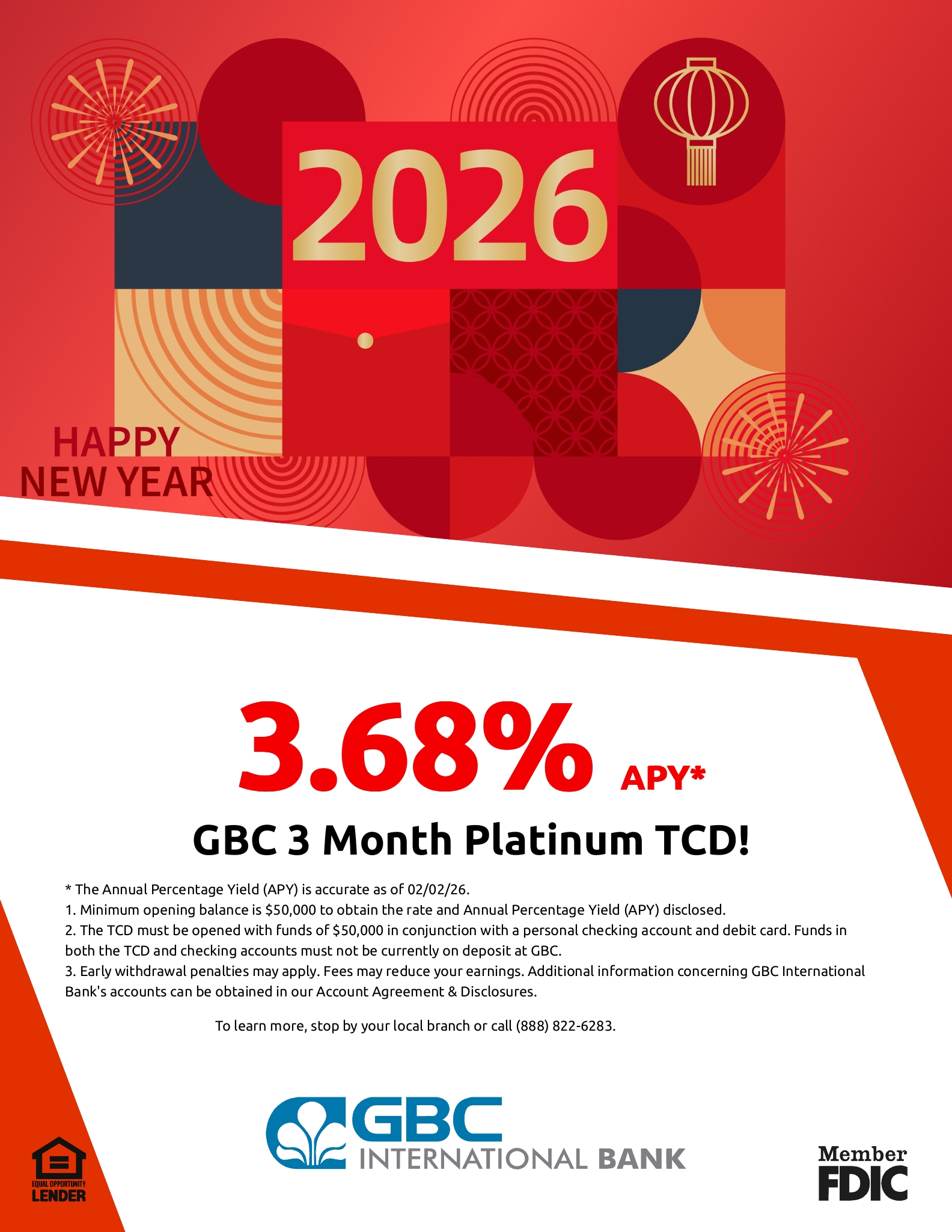 3. Early withdrawal penalties may apply. Fees may reduce your earnings. Additional information concerning GBC International Bank's accounts can be obtained in our Account Agreement & Disclosures.